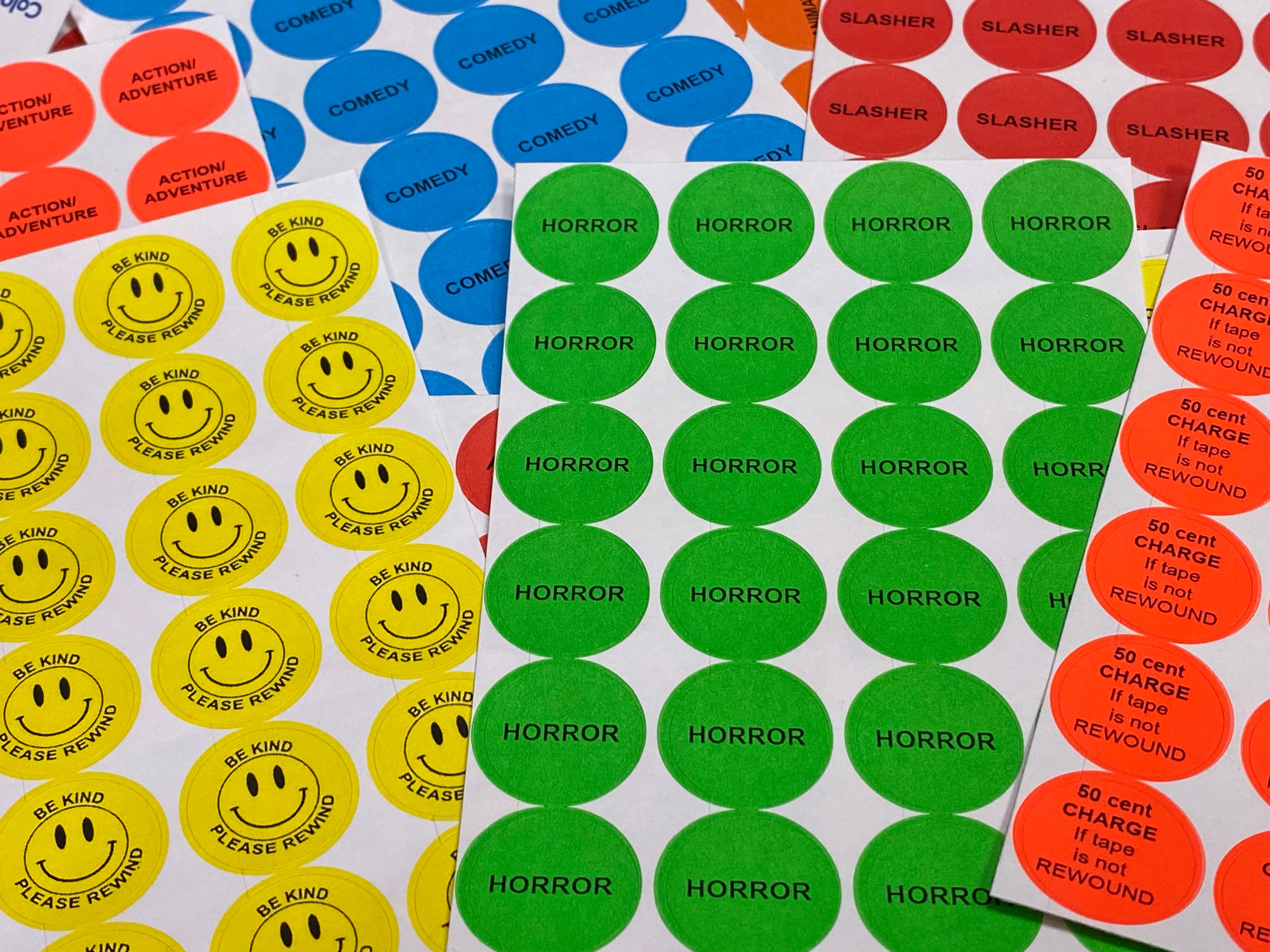 50 Cent Charge If Tape Is Not Rewound VHS Stickers - 24 Pack